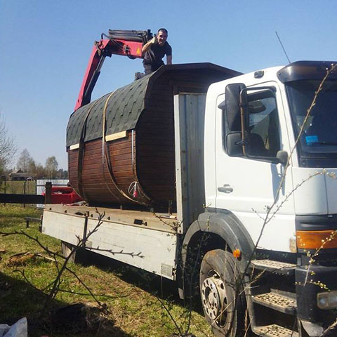 Баня бочка с доставкой от производителя избавит вас от поиска подходящего автомобиля. Мы используем манипулятор с вылетом стрелы до 10 метров. Возможна установка без заезда на участок. Легко привезем даже самую большую баню. Узнать цены на доставку и установку.